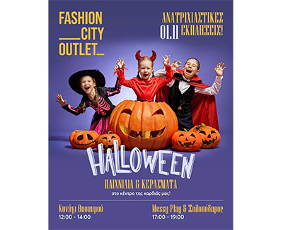 Το φθινόπωρο κορυφώνεται με… ανατριχιαστικά διασκεδαστικό τρόπο στο Fashion City Outlet! Το εμπορικό κέντρο «της καρδιάς μας» υποδέχεται το HALLOWEEN με ένα Σαββατοκύριακο γεμάτο φαντασία, παιχνίδι και εκπλήξεις για μικρούς και μεγάλους.