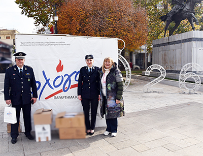 -στα Τρίκαλα, ο Διευθυντής της Διεύθυνσης Αστυνομίας Τρικάλων, Ταξίαρχος Δημήτριος Μήτραινας, και αστυνομικοί της Διεύθυνσης, προσέφεραν τα συγκεντρωθέντα είδη στο Ενιαίο Συσσίτιο Ιεράς Μητρόπολης Τρίκκης, Γαρδικίου και Πύλης «ΑΓΙΟΣ ΙΩΑΝΝΗΣ Ο ΕΛΕΗΜΩΝ» καθώς και στο Κοινωνικό Παντοπωλείο του Δήμου Μετεώρων «Ο ΆγιοςΠαΐσιος».