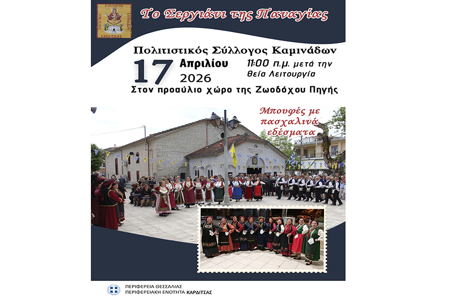 Σ’ αυτή την περίοδο της Λαμπρής, που έφτασε, όπως επίμονα μας το τονίζει και το γνωστό πασχαλιάτικο τραγούδι των χωριών της Θεσσαλίας, περίοπτη θέση κατέχει και ο εορτασμός της «Ζωοδόχου Πηγής» ή της «Παναγίας ή Παναγιάς», όπως λέγεται κοινώς. Στις Καμινάδες Καρδίτσας, σε μια αγροτική κοινότητα τον 19ου αιώνα και σε απόσταση αναπνοής από ένα αστικό κέντρο, όπως ήταν αυτό της Καρδίτσας, ο ναός, που ανηγέρθη, αφιερώθηκε στη Θαυματουργό και ιαματική Ζωοδόχο Πηγή της Παναγίας. Ο Πολιτιστικός Σύλλογος Καμινάδων Καρδίτσας θέλοντας να τιμήσει το πρόσωπο της Παναγίας και το θαύμα της ημέρας αφενός και να δώσει την ευκαιρία σε όλους να θυμηθούν ή να γνωρίσουν το πανηγύρι αφετέρου, ταράσσοντας τα στάσιμα ύδατα της πόλης, της συνοικίας και της συλλογικής μνήμης των κατοίκων, διοργανώνει για πολλοστή φορά και εκ των ενόντων το πανηγύρι της Παναγίας ως σύλλογος μιας ιστορικής συνοικίας και με έντονη κοινοτική συνείδηση και ταυτότητα, αυτή του «Καμινιώτη», αλλά κα για τη συλλογική ταυτότητα του κατοίκου της πόλης, του «Καρδιτσιώτη».