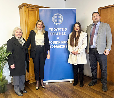 altΣτο πλαίσιο του καταστατικού σκοπού του Συλλόγου των απανταχού εκ του Νομού Καρδίτσας καταγομένων, ανάδειξης και προβολής των προβλημάτων της ιδιαίτερης πατρίδας μας, κι εντεύθεν, επίλυσης αυτών, το προεδρείο του κεντρικού φορέα των απόδημων Καρδιτσιωτών, αποτελούμενο από τους κ.κ. Κων/νο Κουσαή (Πρόεδρο Δ.Σ.), Αλεξάνδρα Θεολόγη (Α' Αντιπρόεδρο Δ.Σ.) και Βασιλική Τσιαπώκη (αν. μέλος Δ.Σ.), συναντήθηκε την 2.4.2026 στο Υπουργείο Εργασίας και Κοινωνικής Ασφάλισης, με την Υφυπουργό κ. Άννα Ευθυμίου.