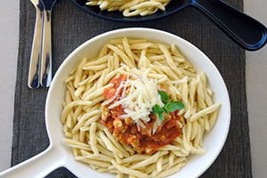 4.- Βράστε τα ζυμαρικά σε αλατισμένο νερό σύμφωνα με τις οδηγίες που αναγράφονται στη συσκευασία και στραγγίστε τα.