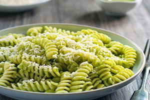 Το πέστο βασιλικού είναι αναμφισβήτητα το πιο γνωστό. Οι Ιταλοί όμως ονομάζουν πέστο και άλλα είδη σάλτσας που φτιάχνονται με τον ίδιο τρόπο, μόνο που αλλάζει το βασικό υλικό. Εδώ σας προτείνουμε μια παραλλαγή με ρόκα: σπιρτόζικη, πικάντικη, δίνει μια διαφορετική, ιδιαίτερη νότα στα φουσίλι και ταιριάζει πολύ με την παρμεζάνα.