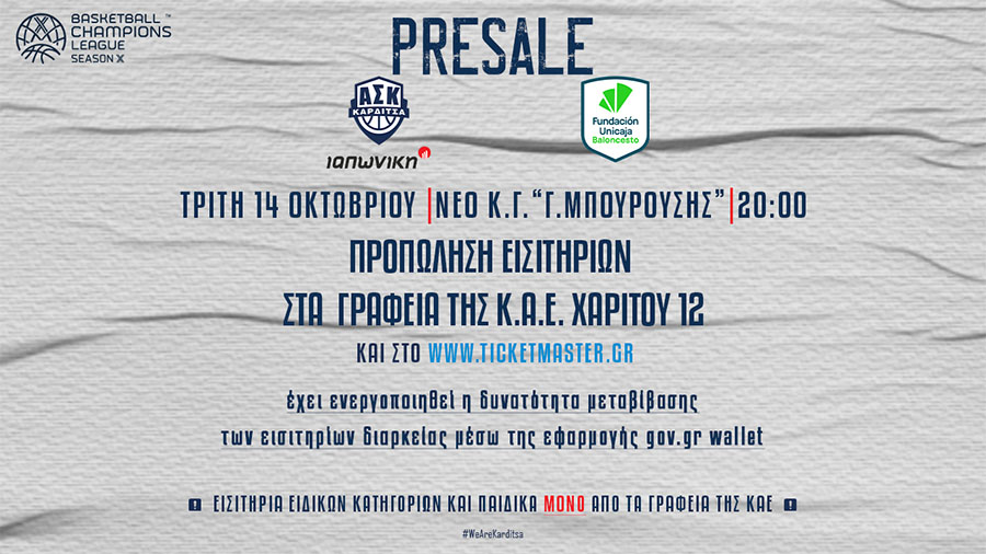 Ο Α.Σ. Καρδίτσας ΙΑΠΩΝΙΚΗ ενημερώνει ότι η διαδικασία της προπώλησης, εξυπηρετεί ακριβώς το σκοπό της αποφυγής του συνωστισμού και της καθυστέρησης στην έκδοση των εισιτηρίων, τα οποία είναι ονομαστικά και αριθμημένα, καθώς επίσης και την έγκαιρη εξασφάλιση θέσης στο γήπεδο προτού τα εισιτήρια εξαντληθούν. Για τον παραπάνω λόγο, παροτρύνουμε τους φιλάθλους να προμηθευτούν τα εισιτήριά τους μέσω της προπώλησης, είτε στα γραφεία του ΑΣΚ, είτε ηλεκτρονικά.