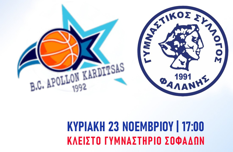 Η αναμέτρηση διεξάγεται στους Σοφάδες, αντί του Κλειστού Γυμναστηρίου του Ε.Α.Κ. Καρδίτσας καθώς, στη φυσική έδρα του Απόλλωνα, διεξάγεται το Σαββατοκύριακο (22-23/11) το Πανελλήνιο Πρωτάθλημα Πάλης U11 & U13.