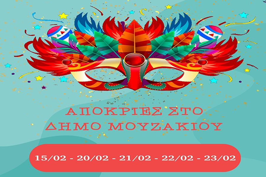 Ο Δήμος Μουζακίου και η Αντιδήμαρχος Πολιτισμού κ.Μαρία Καραμπέκου προσκαλούν όλους τους δημότες και επισκέπτες να συμμετάσχουν στις εκδηλώσεις και να γιορτάσουν τις Απόκριες και την Καθαρά Δευτέρα με παραδοσιακά έθιμα, μουσική, θέατρο και γλέντι.