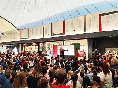 Πλήθος παιδιών και γονιών κατέκλυσαν τους χώρους του Fashion City Outlet, συμμετέχοντας ενεργά στη διαδραστική παράσταση που γέμισε το εμπορικό με γέλια, φαντασία και πολύχρωμες εικόνες. Η ατμόσφαιρα ήταν μαγική, με τους μικρούς θεατές να ζουν κάθε στιγμή και να αποχωρούν γεμάτοι χαρά και ενθουσιασμό.