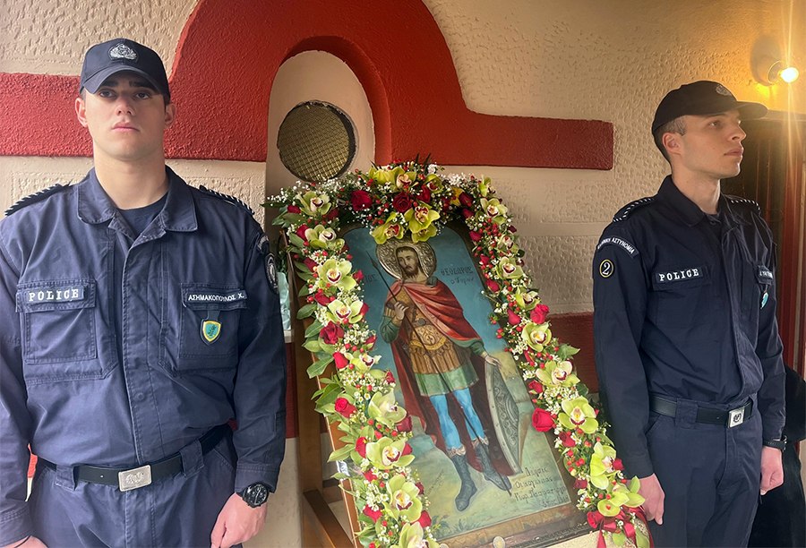 Την ιερή εικόνα μετέφεραν σπουδαστές της Σχολής Αστυφυλάκων Μουζακίου, συνοδεία του Διευθυντή της Σχολής κ.Ιωάννη Τσιώλη.