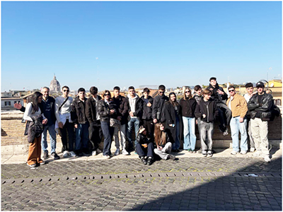 Την τέταρτη ημέρα του προγράμματος πραγματοποιήθηκε κοινή εκπαιδευτική επίσκεψη στη Ρώμη με τους Ιταλούς μαθητές και εκπαιδευτικούς. Oι συμμετέχοντες είχαν την ευκαιρία να επισκεφθούν σημαντικά ιστορικά και πολιτιστικά μνημεία, όπως το Κολοσσαίο, τη Ρωμαϊκή Αγορά, το Πάνθεον, τη Φοντάνα ντι Τρέβι, την Πιάτσα Ναβόνα, καθώς και τη Βασιλική του Αγίου Πέτρου στο Βατικανό και τα Μουσεία του Βατικανού, εμπλουτίζοντας έτσι τις ιστορικές και πολιτιστικές τους γνώσεις.