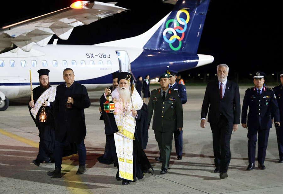 Το Άγιο Φως μεταφέρθηκε από την Αθήνα με ειδική πτήση, προκειμένου να διασφαλιστεί η έγκαιρη διανομή του σε όλες τις ενορίες και τους ιερούς ναούς της ευρύτερης περιφέρειας ενόψει της Αναστάσιμης Ακολουθίας.