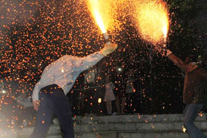 Στη Χίο, το περίφημο έθιμο του ρουκετοπόλεμου συνεχίζει να μαγνητίζει τα βλέμματα, παρά τις κατά καιρούς αντιδράσεις.