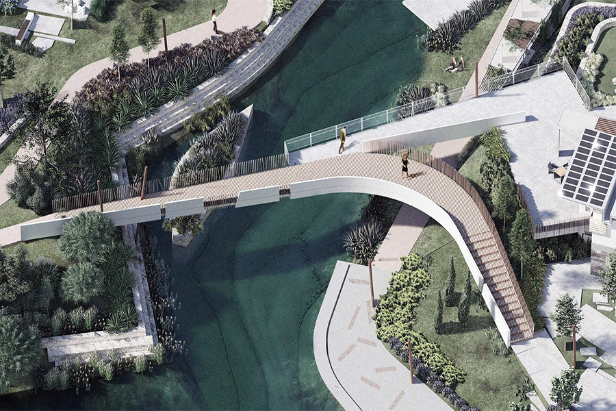 -Ανακατασκευή του υφιστάμενου πεζο-ποδηλατόδρομου, ως νέα αποκλειστική λειτουργία πεζόδρομου (δυτικό τμήμα), πλάτους 2,20 μ., διπλής κατεύθυνσης, με έμφαση στη χρήση υλικών βιοκλιματικού χαρακτήρα, ώστε να δημιουργηθεί αμιγώς κίνηση πεζών εντός του πολυλειτουργικού πάρκου, εξασφαλίζοντας το αναγκαίο ελεύθερο πλάτος κίνησης καιχωρίς την εμπλοκή πεζών και ποδήλατων στην ίδια διαδρομή – αποφυγή ατυχημάτων.