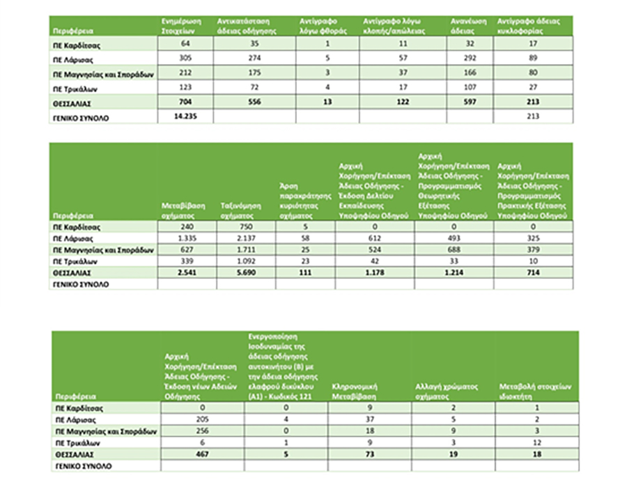 Σε νέα ψηφιακή εποχή έχουν εισέλθει εδώ και λίγο χρονικό διάστημα οι Διευθύνσεις Μεταφορών των τεσσάρων Περιφερειακών Ενοτήτων της Περιφέρειας Θεσσαλίας, καθώς από τις 15/10/25 μέχρι 31/3/2026 σε διάστημα μόλις 4,5 μηνών, έχουν διεκπεραιωθεί ψηφιακά τα αιτήματα 14.235 πολιτών και επιχειρήσεων της Θεσσαλίας