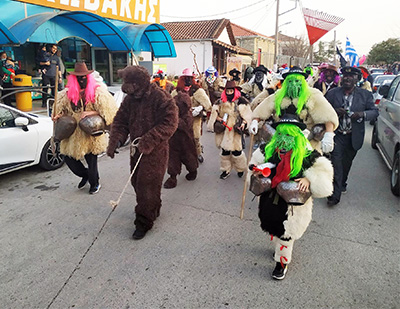 Νωρίς το απόγευμα, στην κεντρική πλατεία του χωριού, επαναλήφθηκε μουσικό γλέντι με δημοτικούς χορούς και παλιά τραγούδια όπου πρωταγωνιστικό ρόλο είχαν μασκαρεμένοι «κουδουνάδες» και «αρκουδιάρηδες».