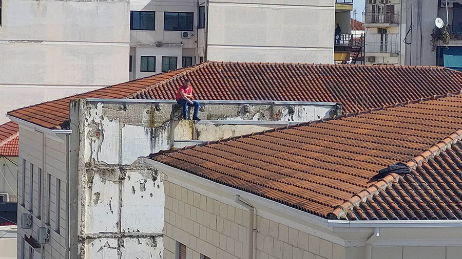 Ο άντρας συνεχίζει να βρίσκεται στη στέγη του δικαστικού μεγάρου ενώ συνομιλεί με τους αστυνομικούς χωρίς ωστόσο προς το παρόν να υπάρχει λύση αν και μοιάζει πως κάπως έχει ηρεμήσει.