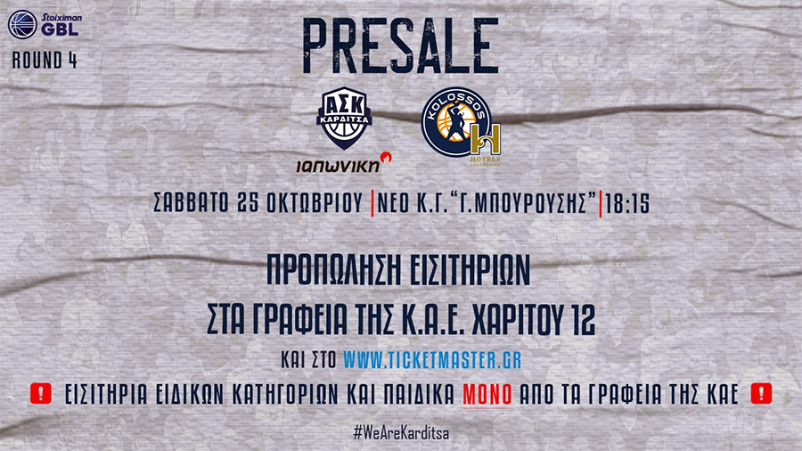 Σε κυκλοφορία η προπώληση των εισιτηρίων για τον αγώνα με ΑΣ Καρδίτσας με Κολοσσό Ρόδου